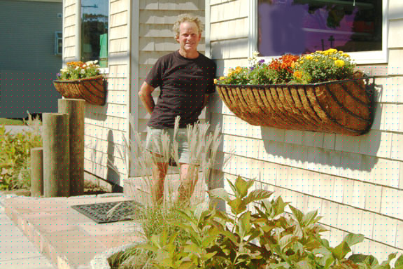 Mr. Kettler created this small garden in front of a liquor store on an island in New England.