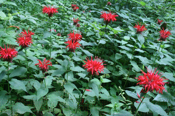 This bee balm has a striking red flower that is a favorite food for hummingbirds.
